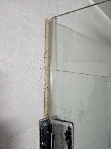 수전 교체 전 화장실 샤워부스 내부입니다.