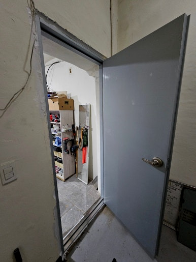 벽체와 문틀이 단단하게 용접이 되어 있어서