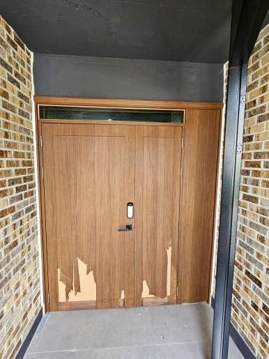 마감 작업을 마치고 현관문 보양 비닐을 벗기면