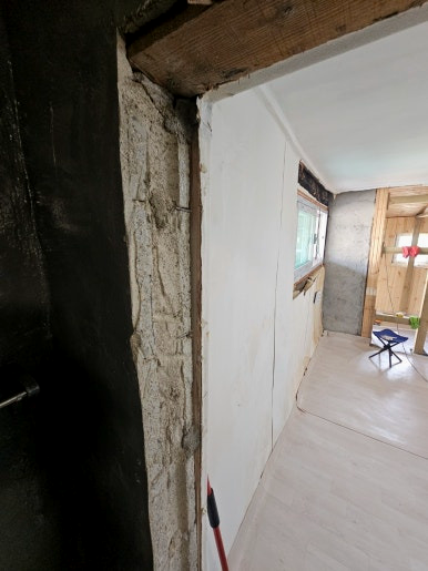 벽이 많이 누운 상태라서 수직 수평 맞추는데